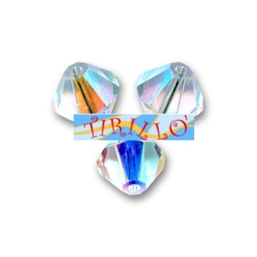 50 cristalli Swarovski bicono con trattamento Aurora Boreale. Colore: crystal SWAROVSKI ORIGINALI