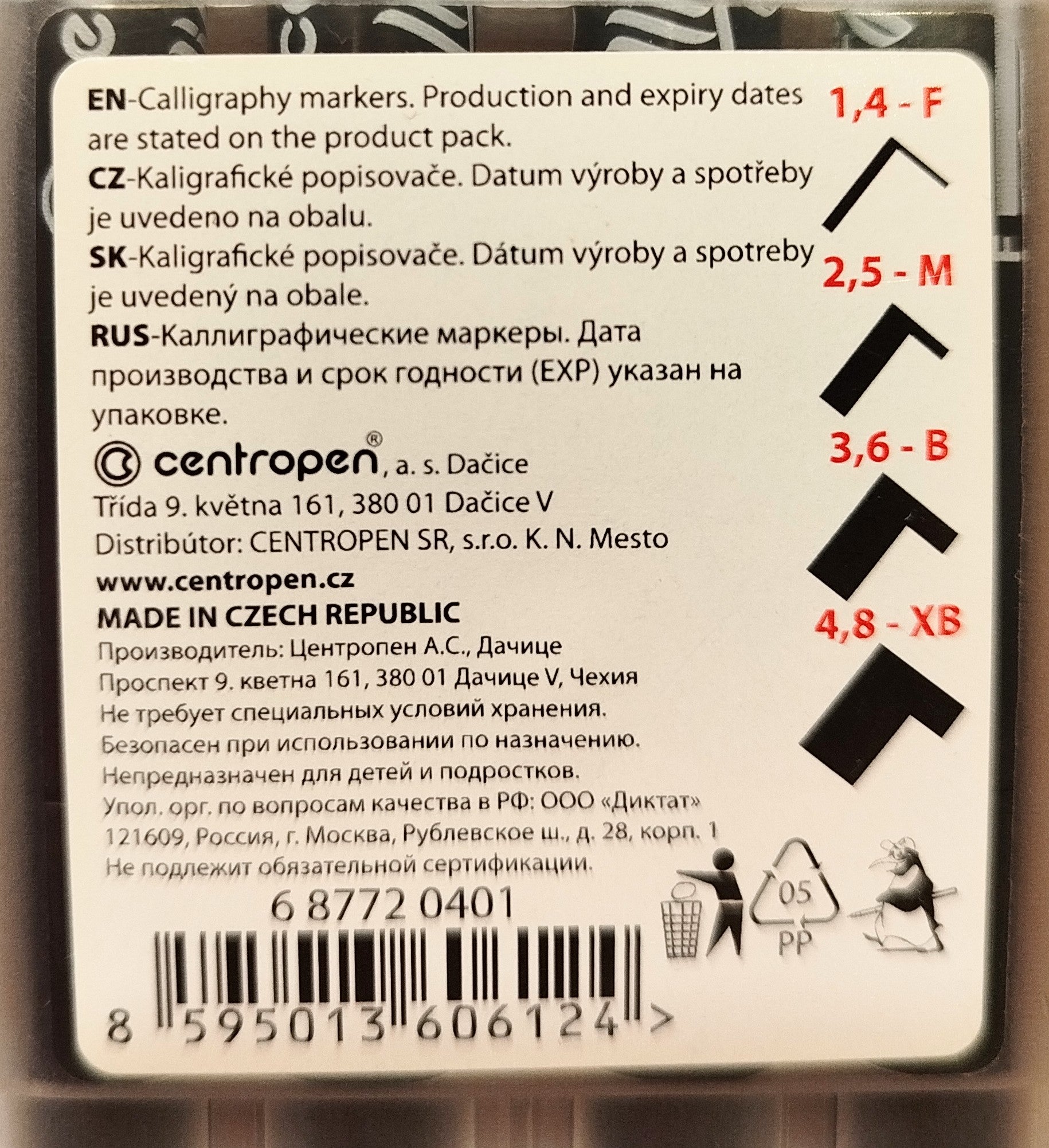 Punta in feltro a scalpello in 4 misure diverse: 1,4mm/2,5mm/3,6mm/4,8mm.